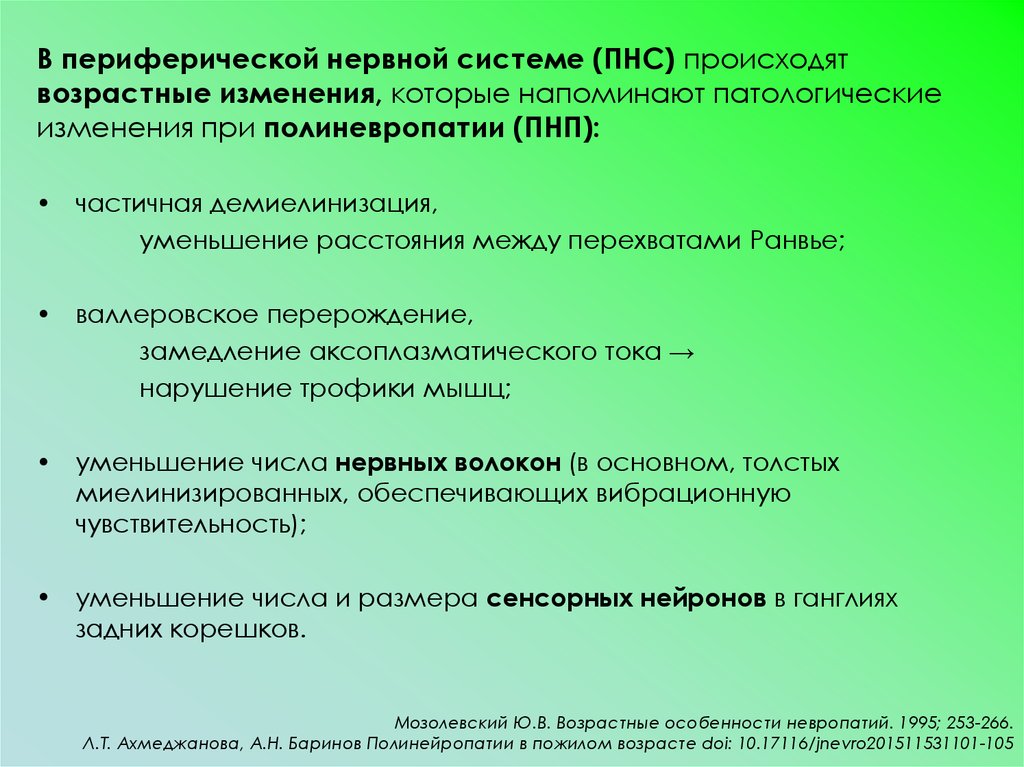 В периферической нервной системе (ПНС) происходятвозрастные изменения, которые напоминают патологические
