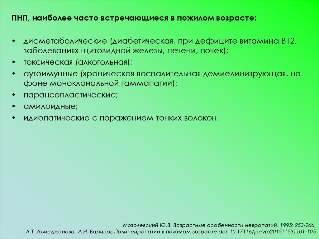 Мозолевский Ю.В. Возрастные особенности невропатий. 1995; 253-266.