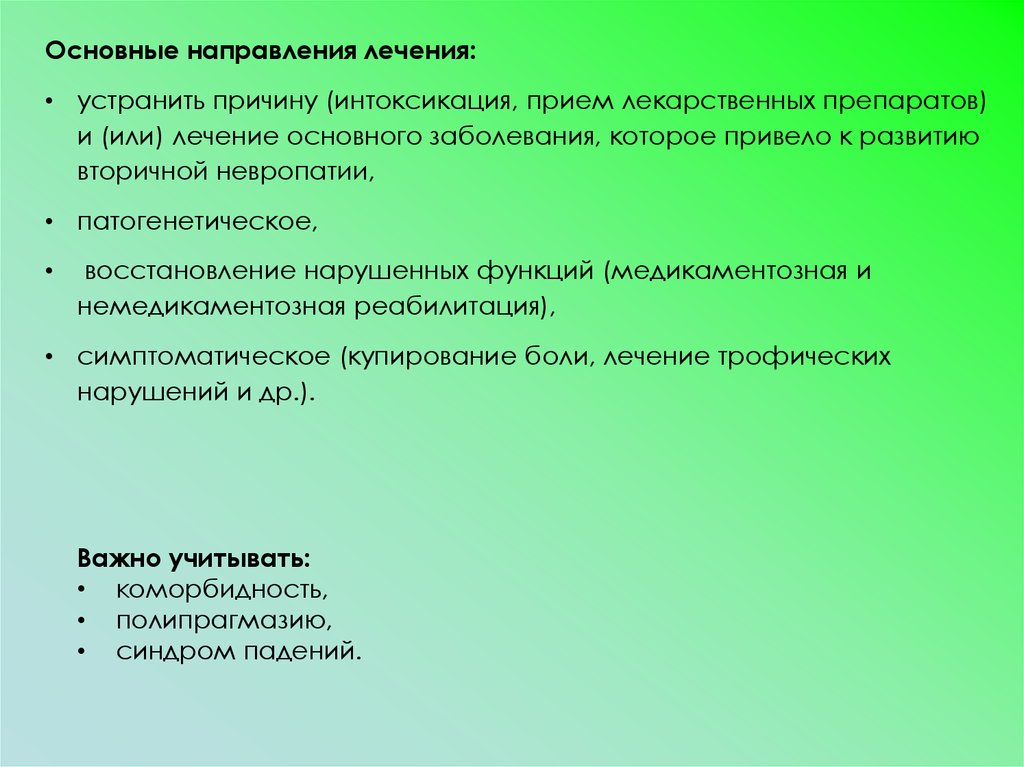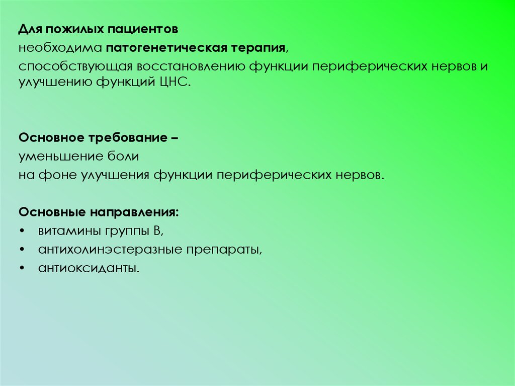 заболеваниях ПНС в пожилом возрасте уже в начале лечения