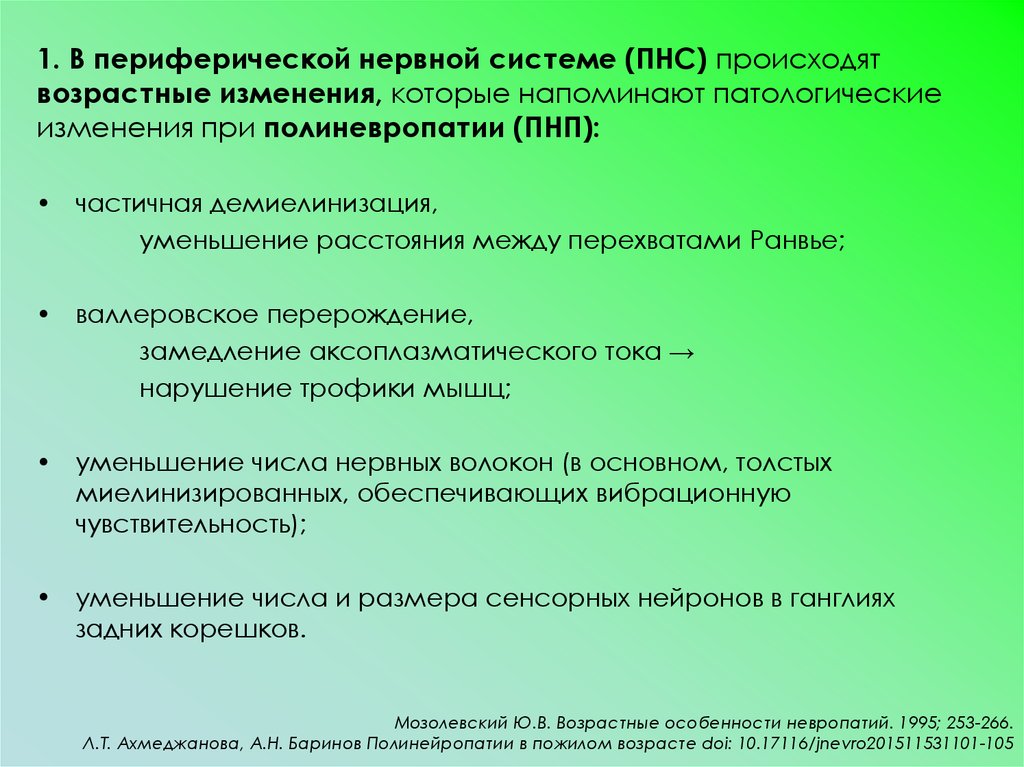 1. В периферической нервной системе (ПНС) происходятвозрастные изменения, которые напоминают патологические