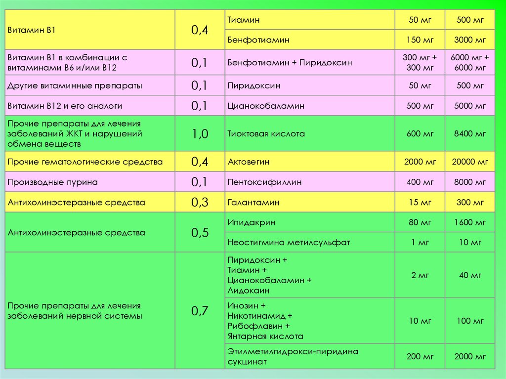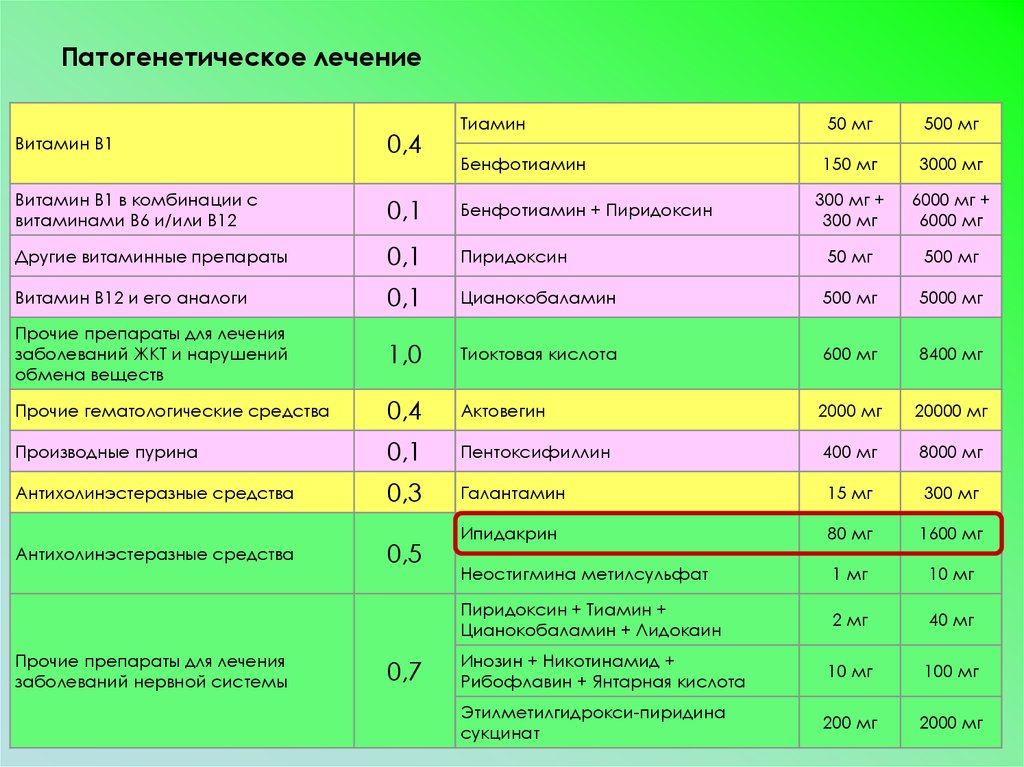 группы В, антихолинэстеразные препараты, антиоксиданты)