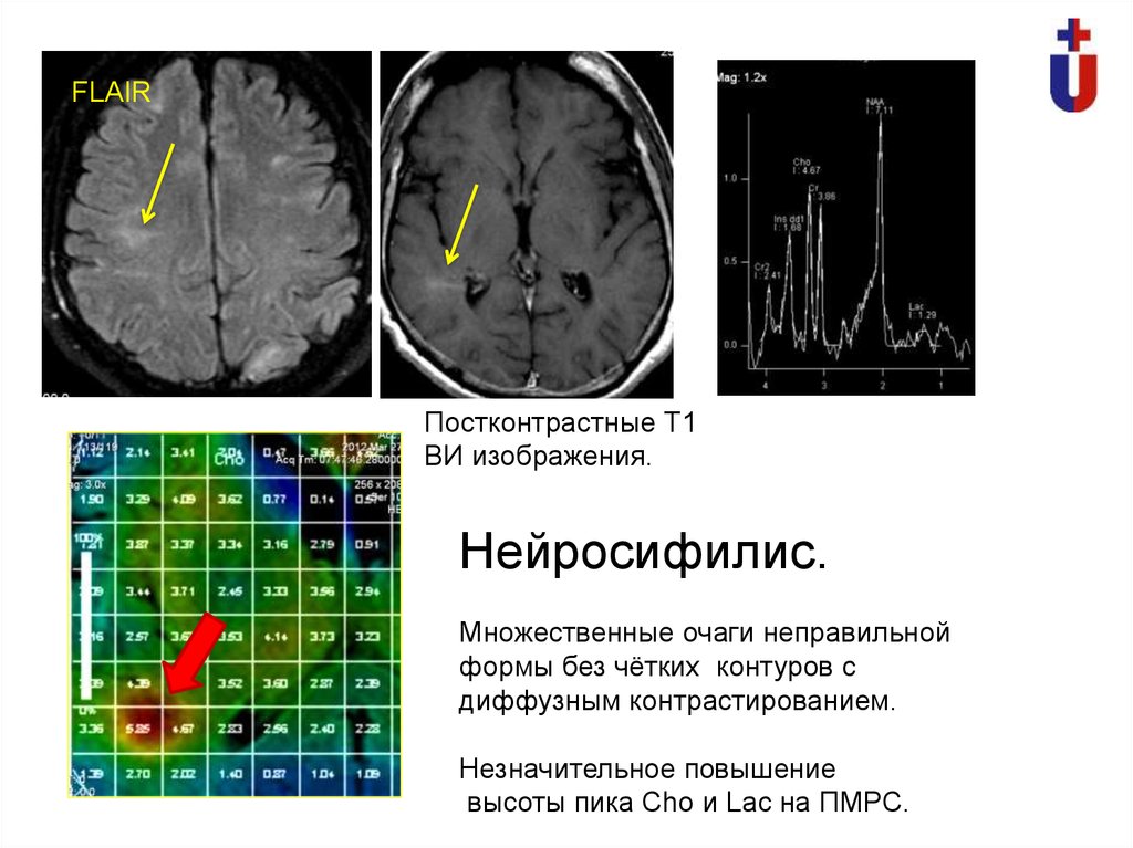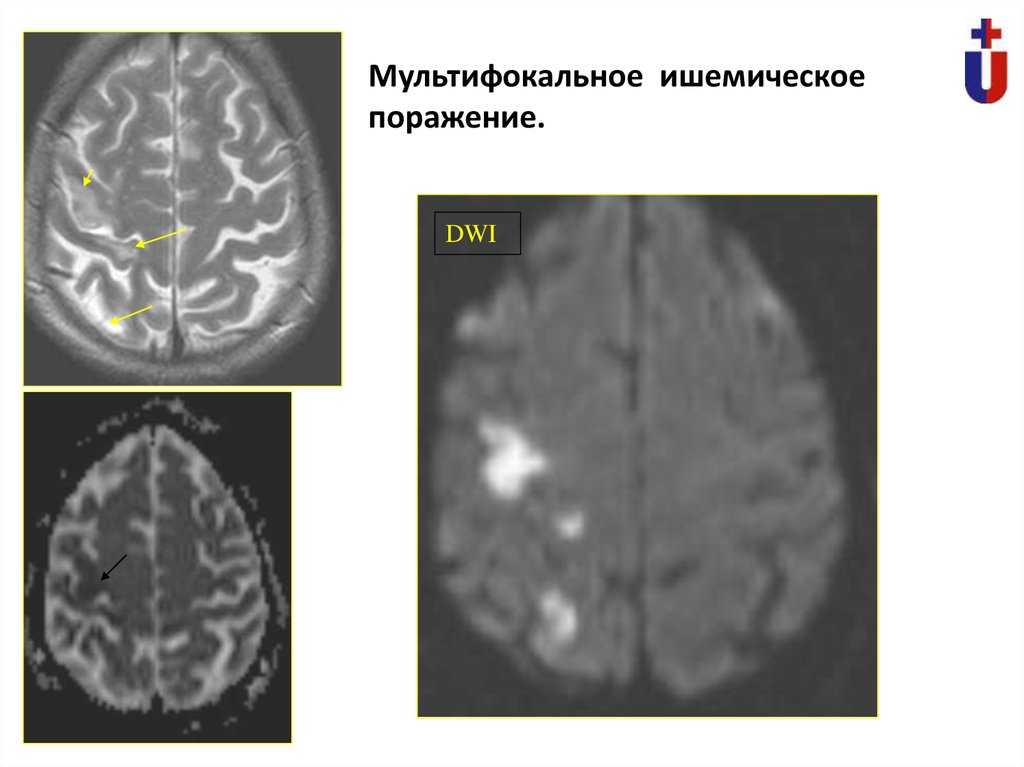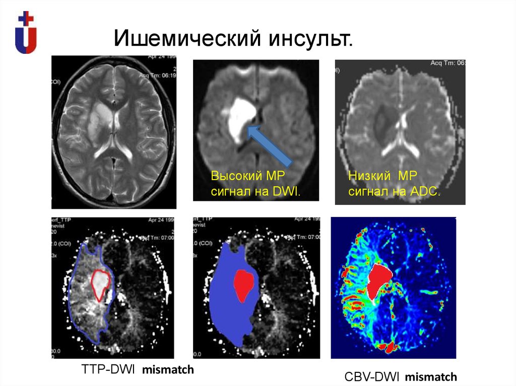 Подострая фаза ишемического инсульта (4 суток).Повышение МР