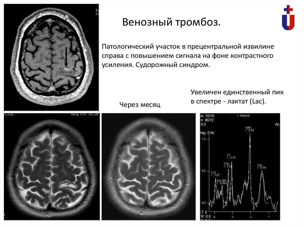 Венозный тромбоз.Патологический участок в прецентральной извилине