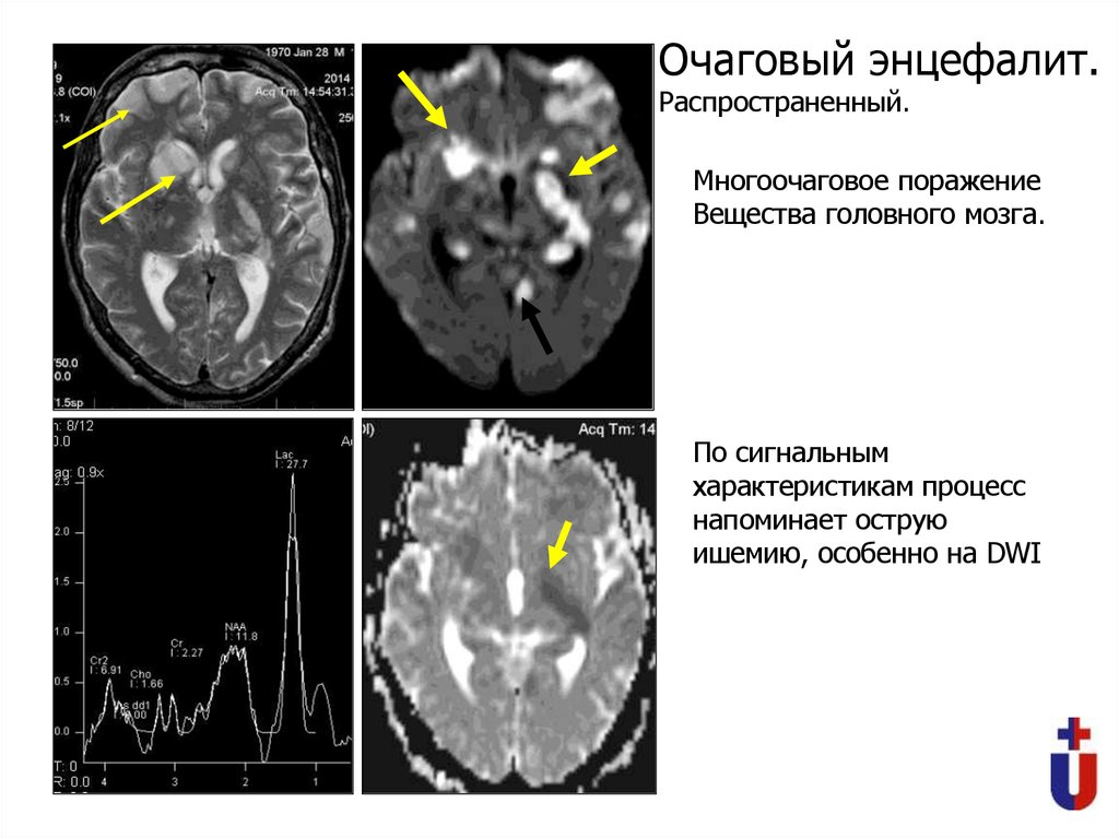 Демиелинизирующее заболевание.Единичный очаг неоднородной структуры без