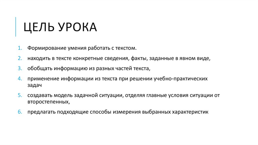 ЦЕЛЬ УРОКА1. Формирование умения работать с текстом.