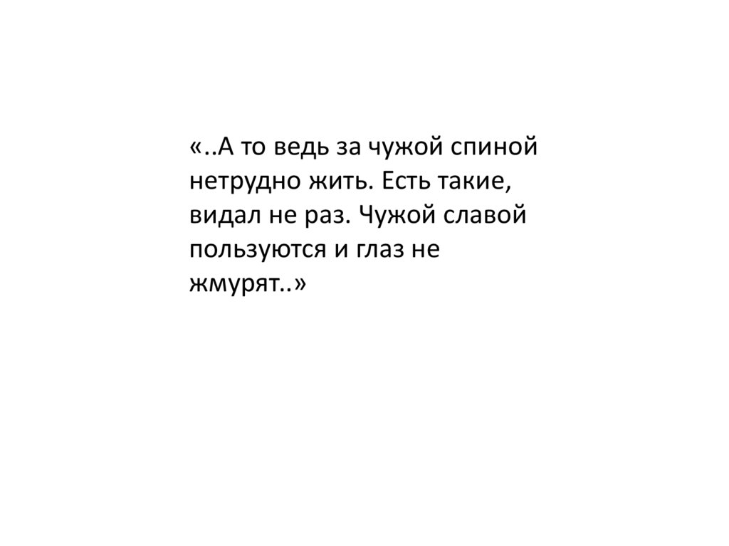 «..А то ведь за чужой спинойнетрудно жить. Есть такие,