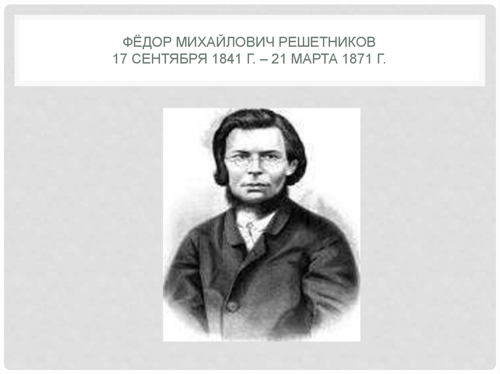 ФЁДОР МИХАЙЛОВИЧ РЕШЕТНИКОВ17 СЕНТЯБРЯ 1841 Г. – 21 МАРТА 1871 Г.