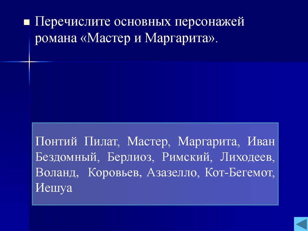 Перечислите основных персонажейромана «Мастер и Маргарита».