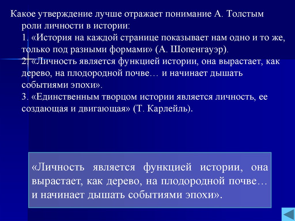 Какое утверждение лучше отражает понимание А. Толстымроли личности в истории:
