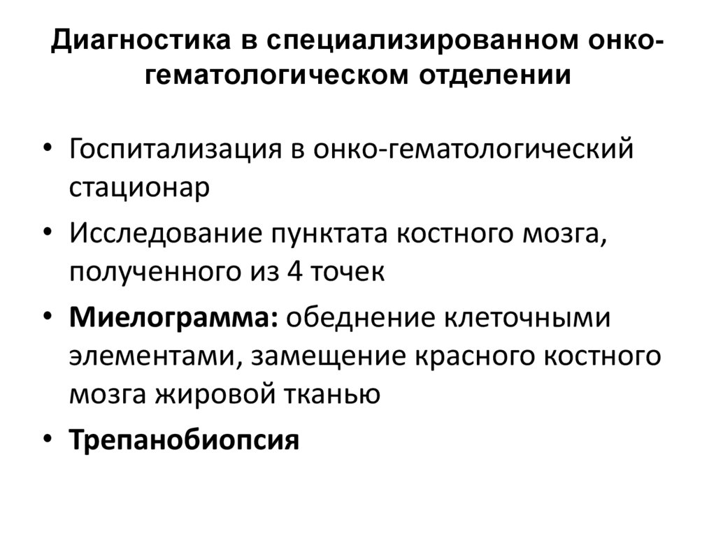 Диагностика в специализированном онкогематологическом отделении• Госпитализация в онко-гематологический