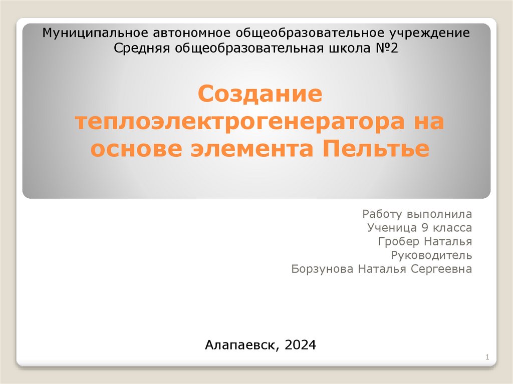Создание теплоэлектрогенератора на основе элемента Пельтье