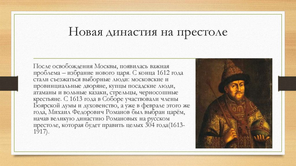 Новая династия на престолеПосле освобождения Москвы, появилась важная