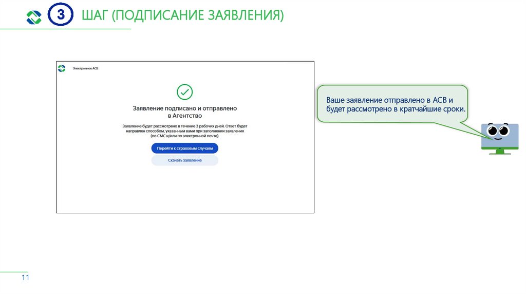 ШАГ (ПОДПИСАНИЕ ЗАЯВЛЕНИЯ)Ваше заявление отправлено в АСВ и
