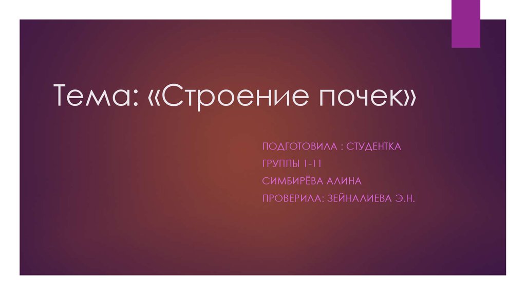 1. Тема: «Строение почек»