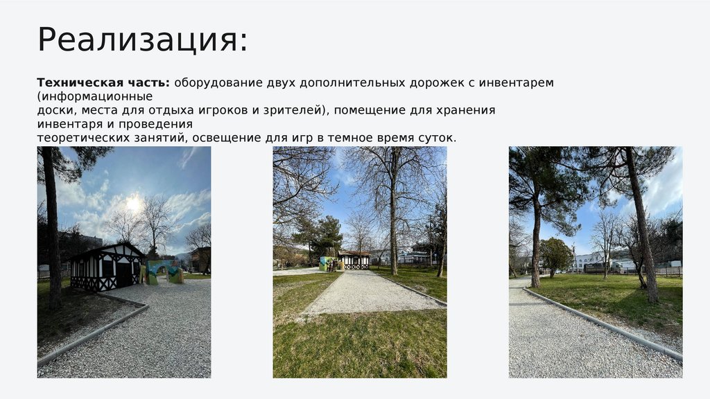 Реализация:Техническая часть: оборудование двух дополнительных дорожек с инвентарем