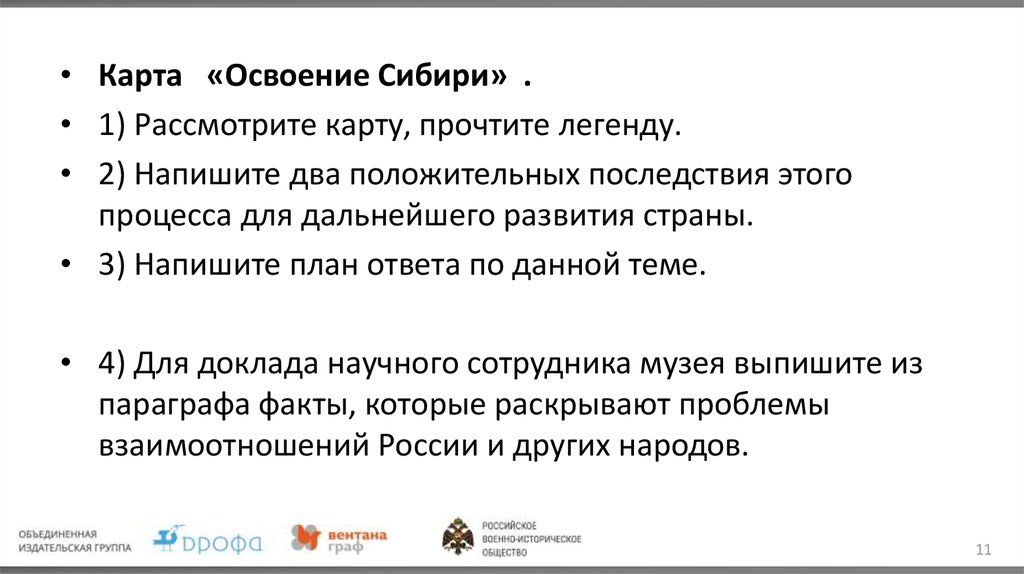 • Карта «Освоение Сибири» .• 1) Рассмотрите карту, прочтите легенду.