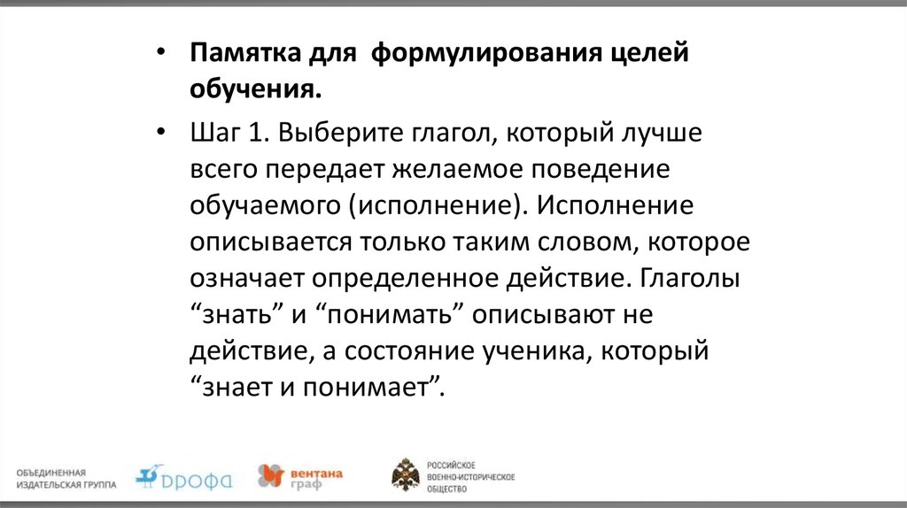 Доминантный глагол в формулировке целидолжен быть совершенного вида.