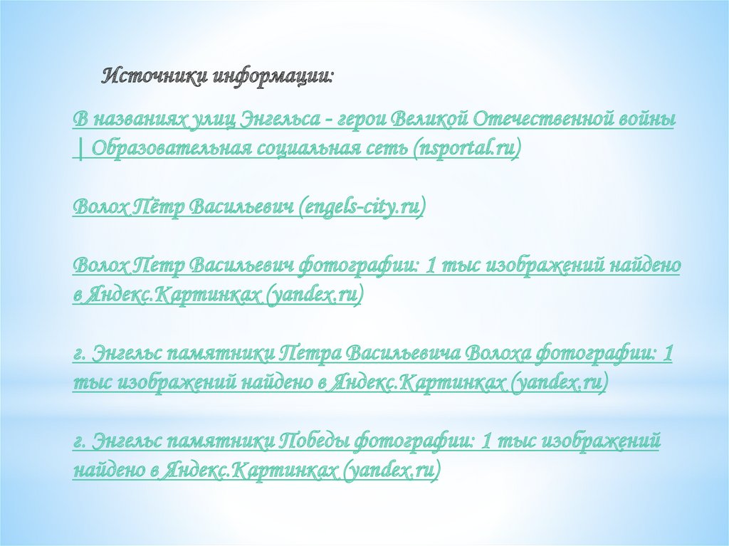 Источники информации:В названиях улиц Энгельса - герои Великой Отечественной войны