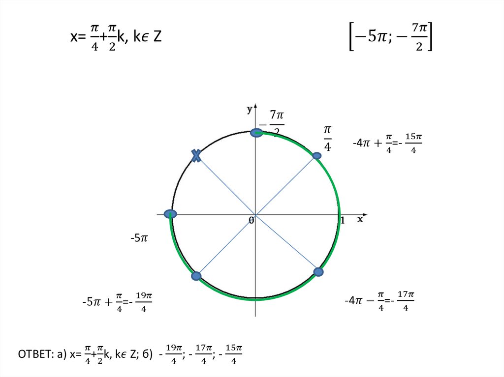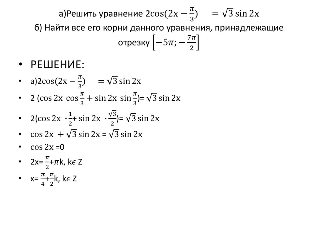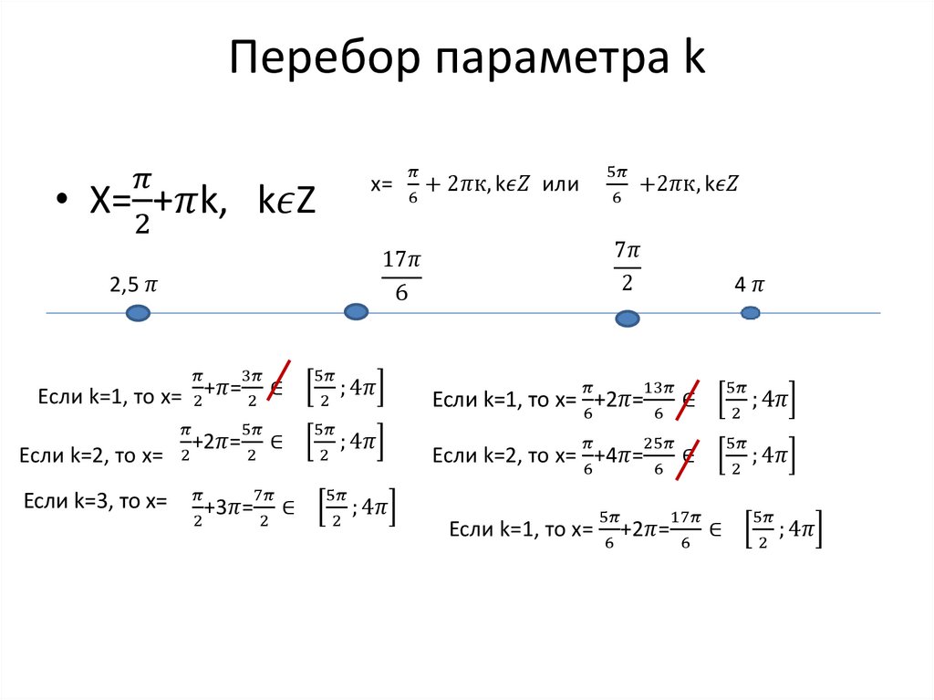 Решение тригонометрических уравнений с отбором корней на заданном промежутке