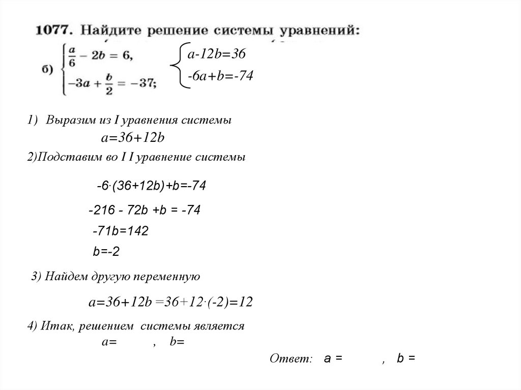 a-12b=36-6a+b=-74