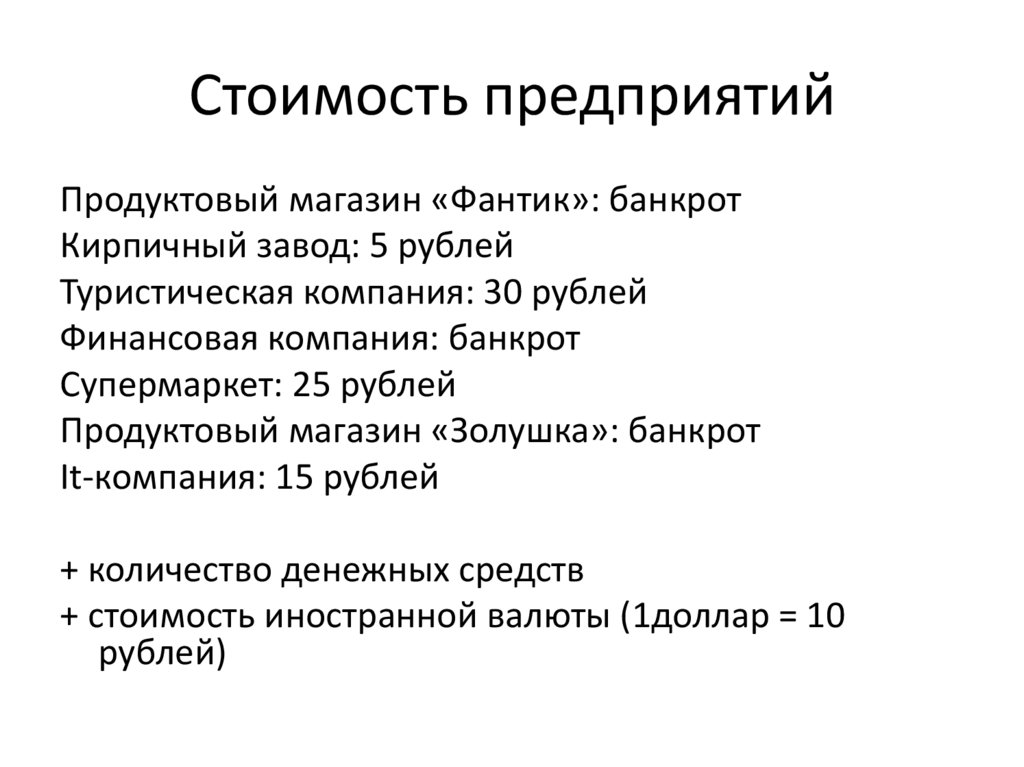 Стоимость предприятийПродуктовый магазин «Фантик»: банкрот