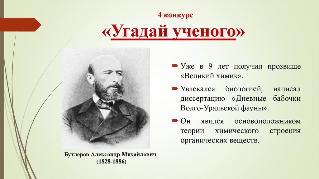 Бертло, Зинин, Кучеров, Фаворский, Фишер, Марковников.