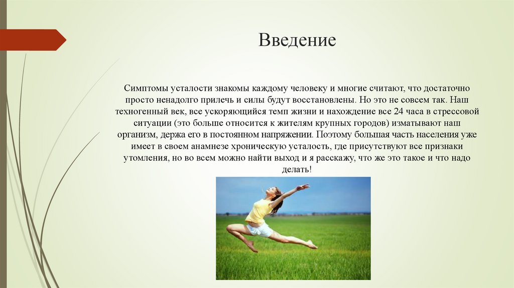 ВведениеСимптомы усталости знакомы каждому человеку и многие считают, что достаточно