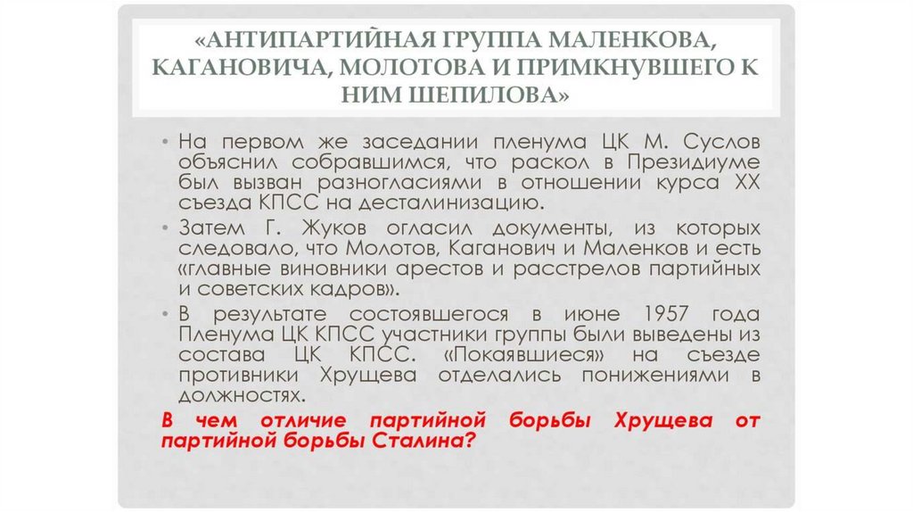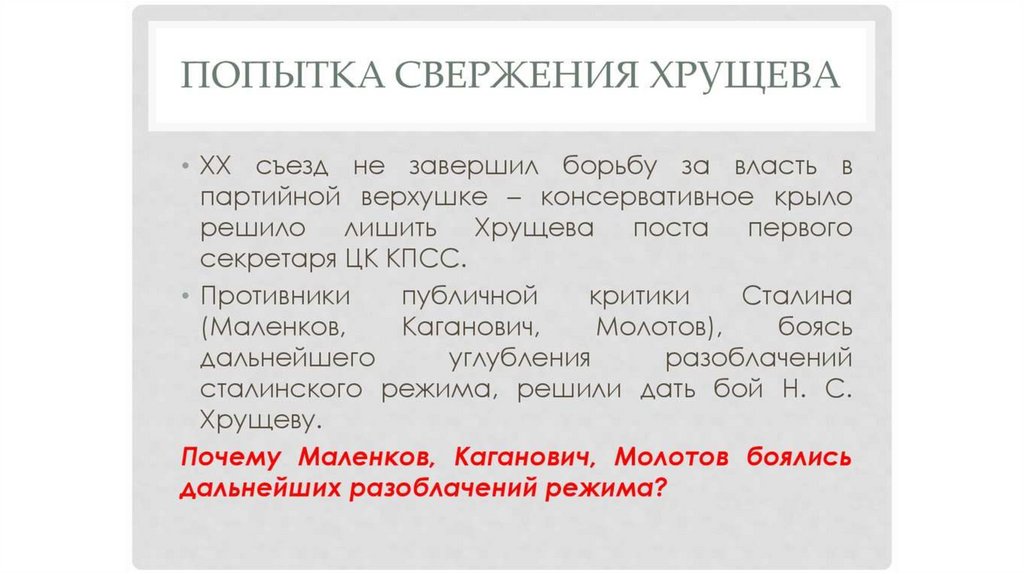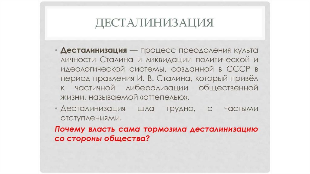 Оттепель. Середина 1950 г. - половина 1960 г
