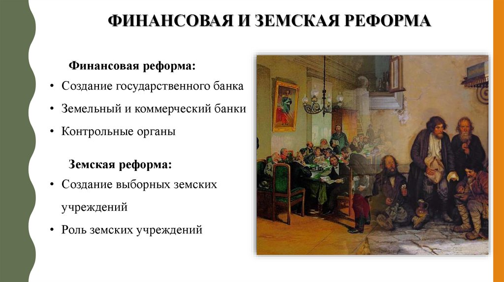 финансовую реформу, земскую реформу и другие, действительно сыграли