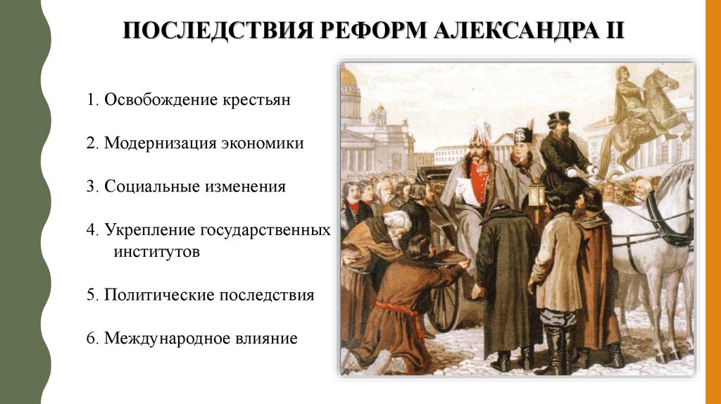 ПОСЛЕДСТВИЯ РЕФОРМ АЛЕКСАНДРА II1. Освобождение крестьян