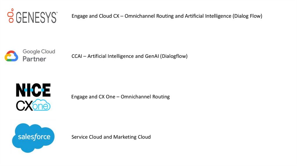 Engage and Cloud CX – Omnichannel Routing and Artificial Intelligence (Dialog Flow)CCAI – Artificial Intelligence and GenAI (Dialogflow)
