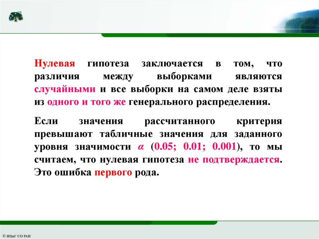 Нулевая гипотеза заключается в том, чторазличия