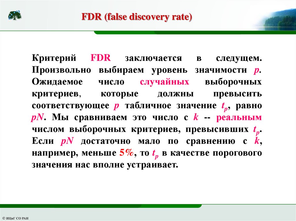 FDR (false discovery rate)Критерий FDR заключается в следущем.