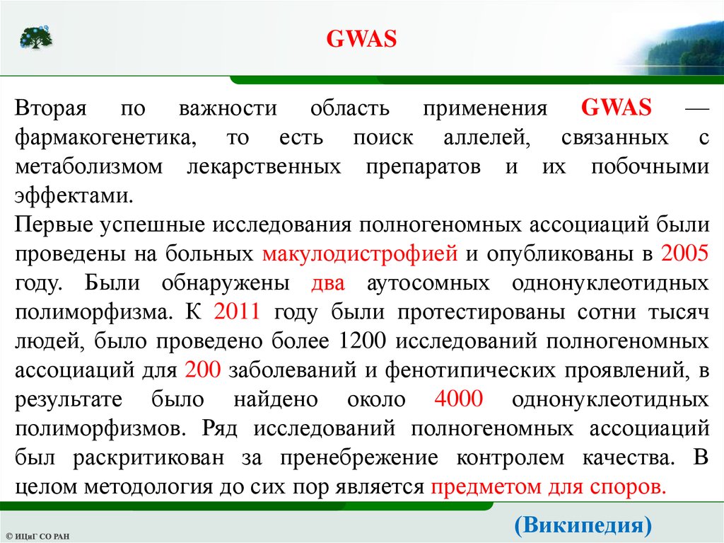 GWASВторая по важности область применения GWAS —