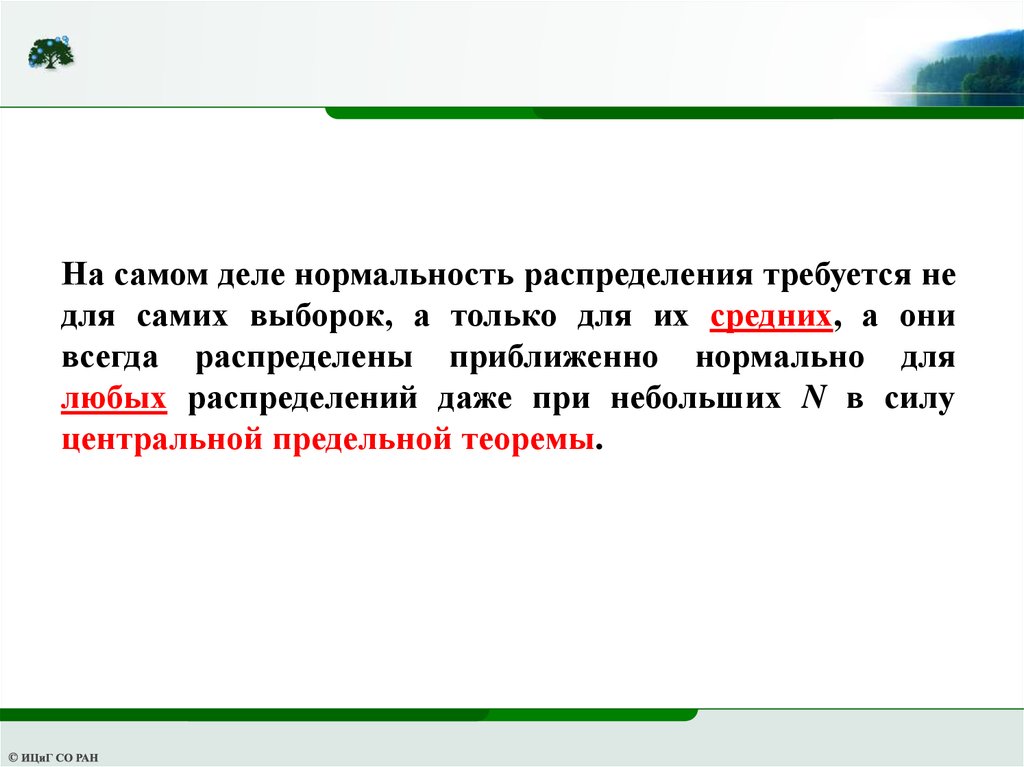 На самом деле нормальность распределения требуется недля самих выборок, а только для их средних, а они