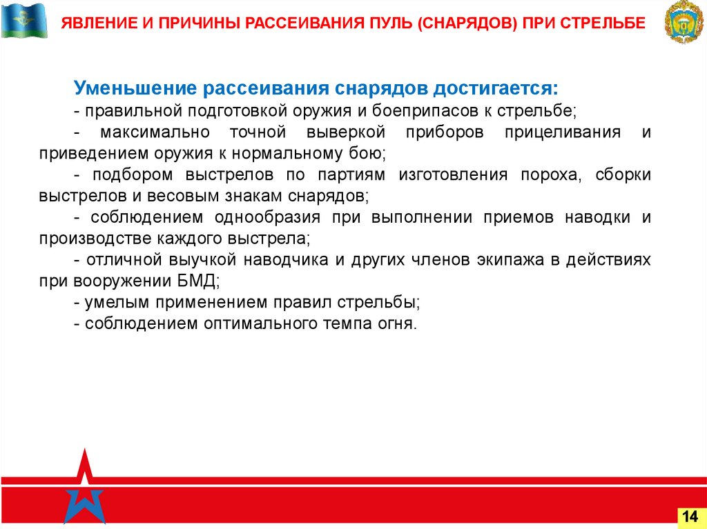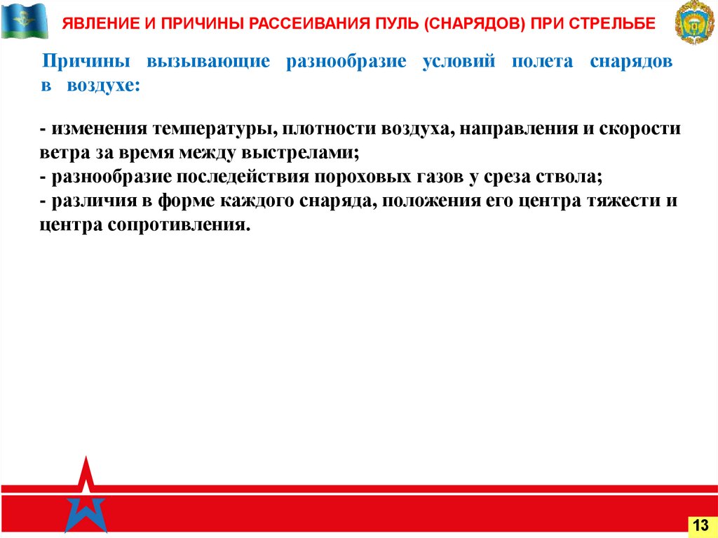 УЧЕБНЫЕ ВОПРОСЫ1 Явление и причины рассеивания пуль