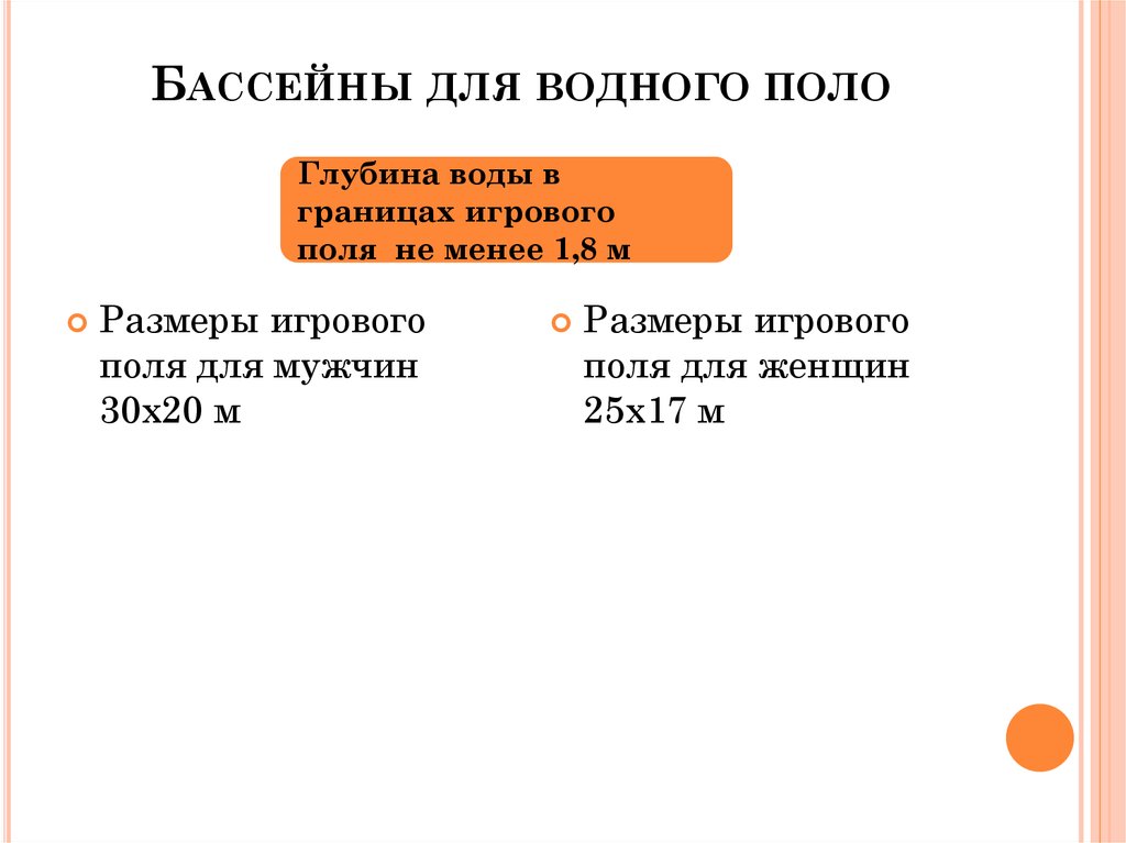 БАССЕЙНЫ ДЛЯ ВОДНОГО ПОЛОГлубина воды в