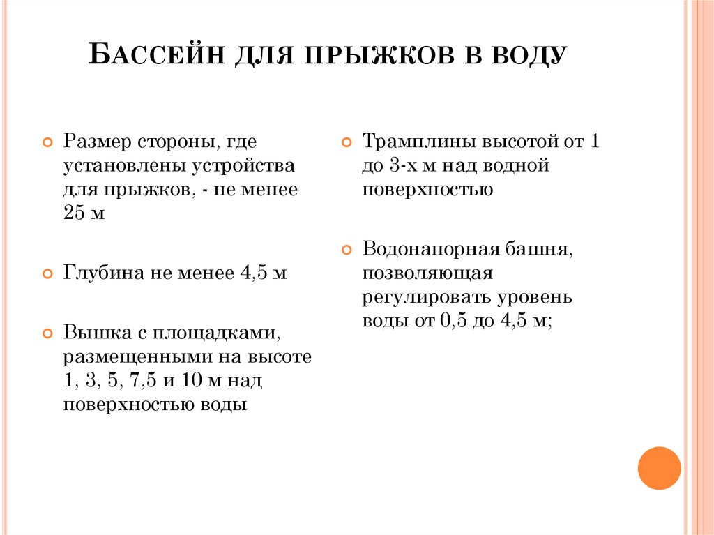 10. бассейн для прыжков в воду оборудуется