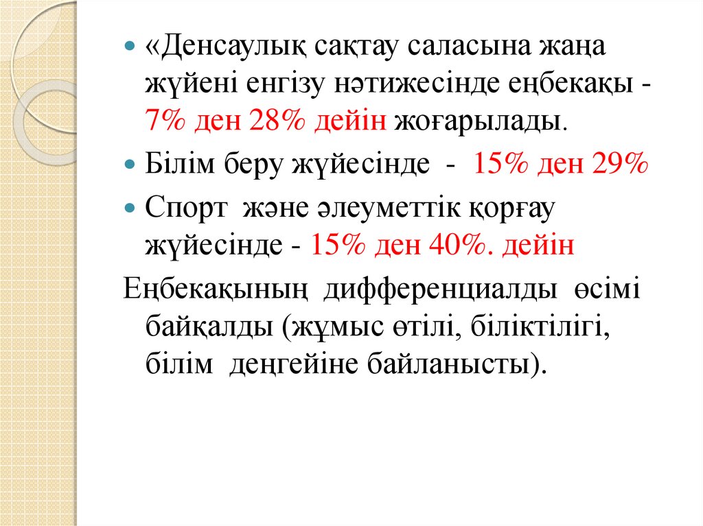 «Денсаулық сақтау саласына жаңажүйені енгізу нәтижесінде еңбекақы 7% ден 28% дейін жоғарылады.
