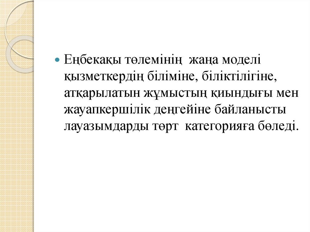 Еңбекақы төлемінің жаңа моделіқызметкердің біліміне, біліктілігіне,