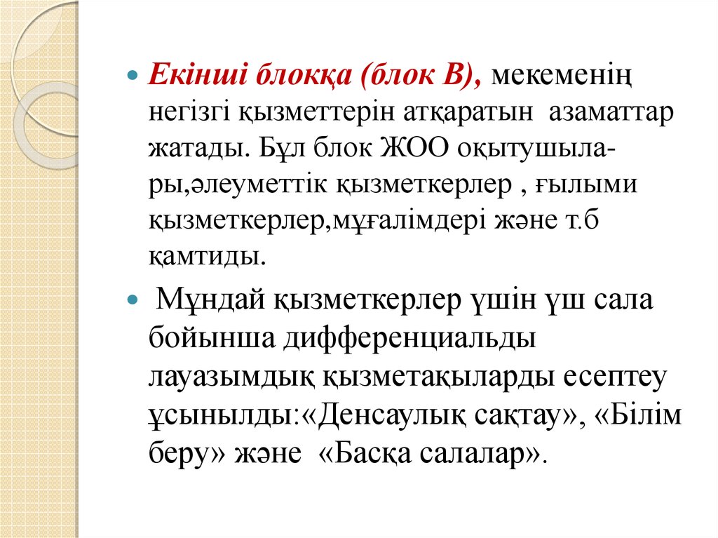 Екінші блокқа (блок В), мекеменіңнегізгі қызметтерін атқаратын азаматтар