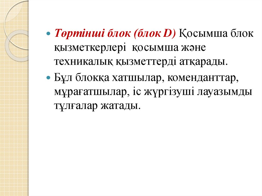Төртінші блок (блок D) Қосымша блокқызметкерлері қосымша және