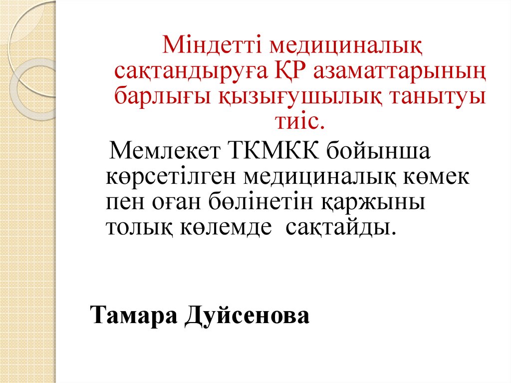 Міндетті медициналықсақтандыруға ҚР азаматтарының