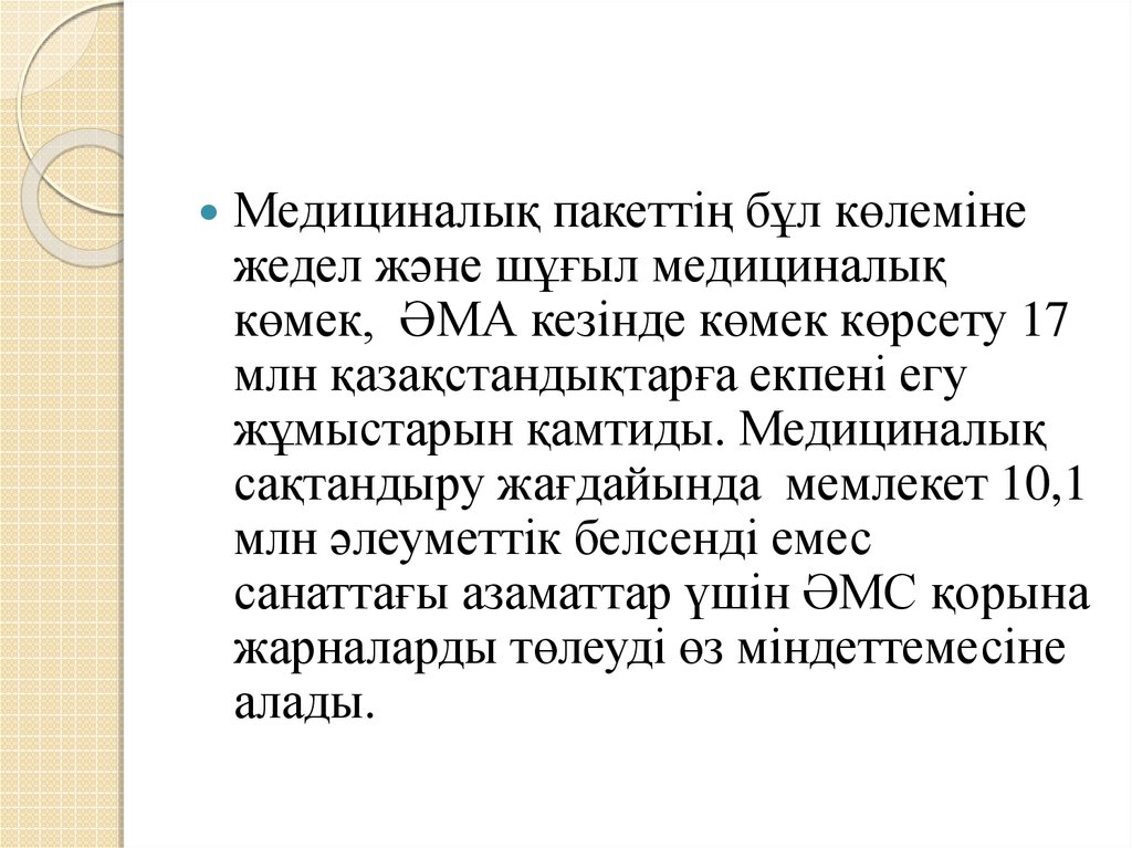 Медициналық пакеттің бұл көлемінежедел және шұғыл медициналық