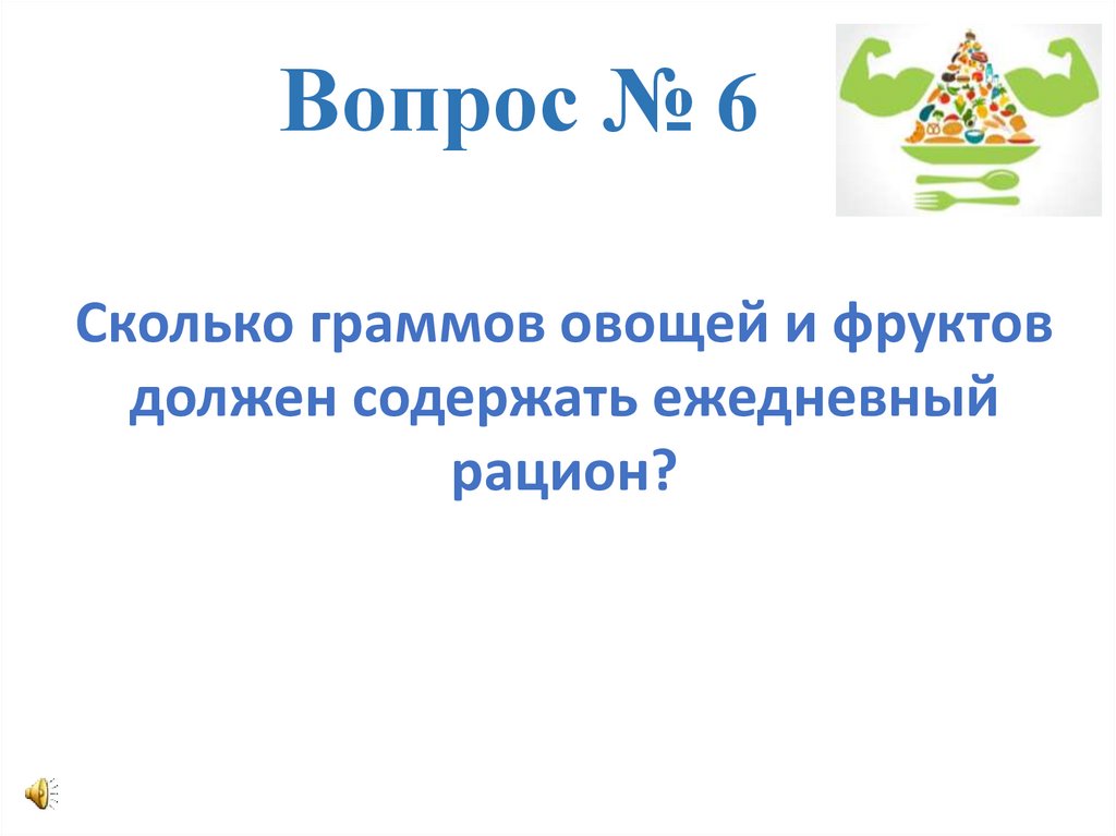 Вопрос № 6Сколько граммов овощей и фруктов