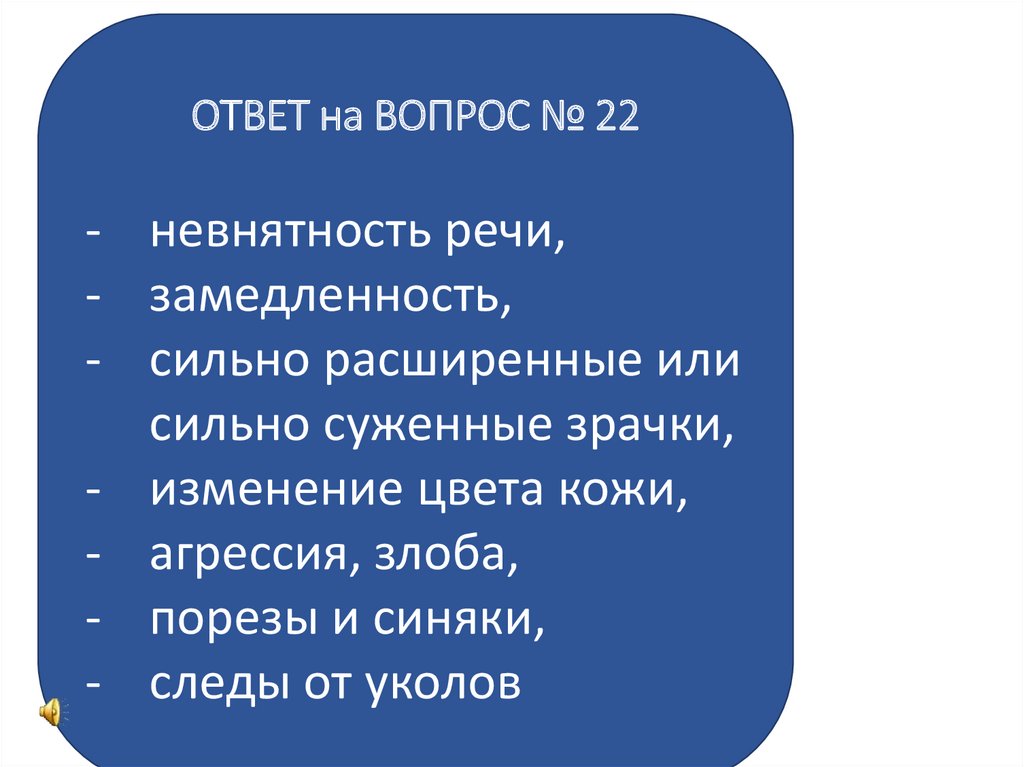 ОТВЕТ на ВОПРОС № 22- невнятность речи,
