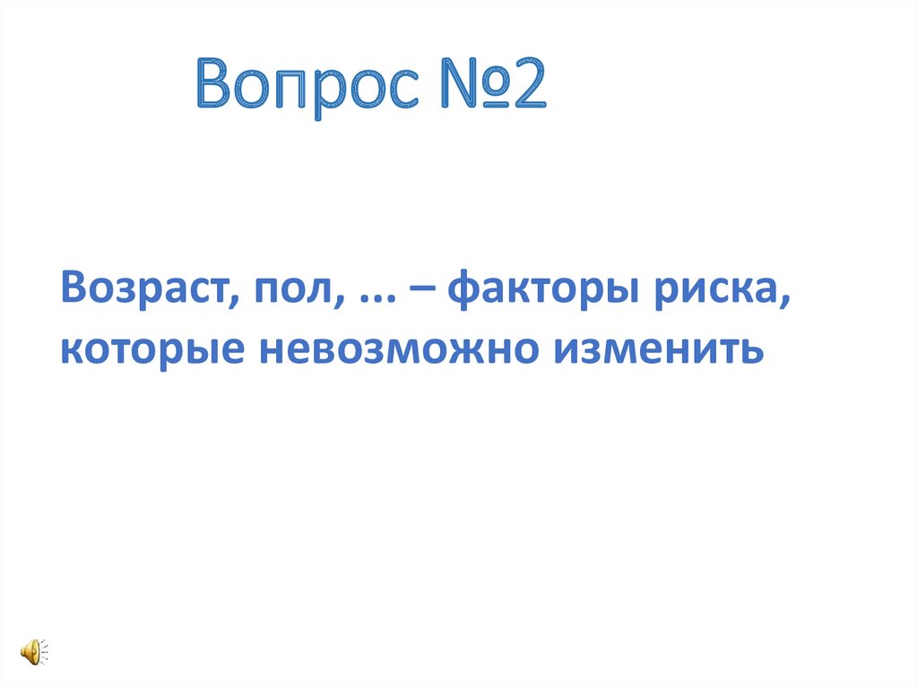 Вопрос №2Возраст, пол, ... – факторы риска,