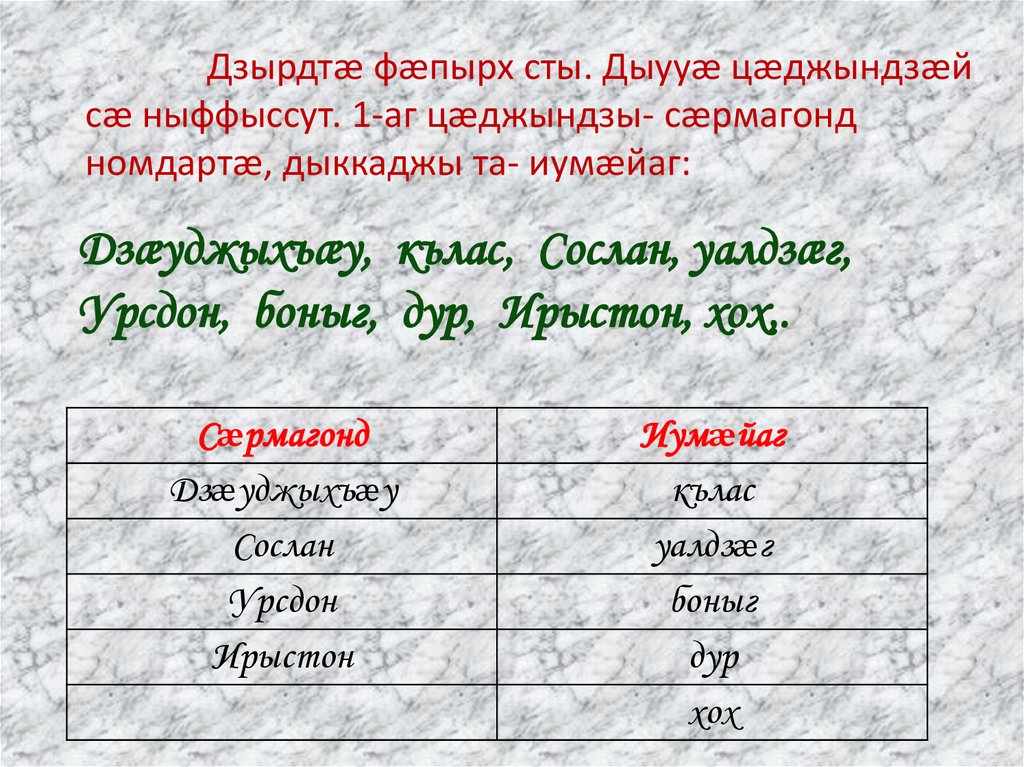 æвзагæй. Ахуыргæнæг мæ тынг раппæлыдис, стæй