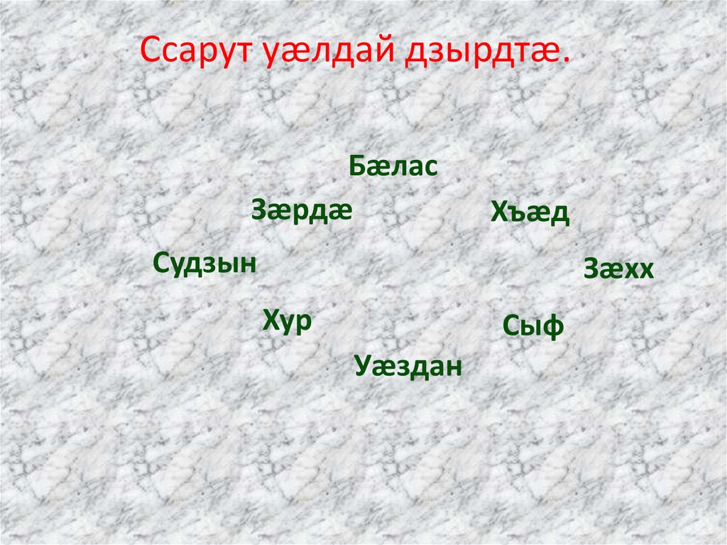 Ссарут уæлдай дзырдтæ.Бæлас