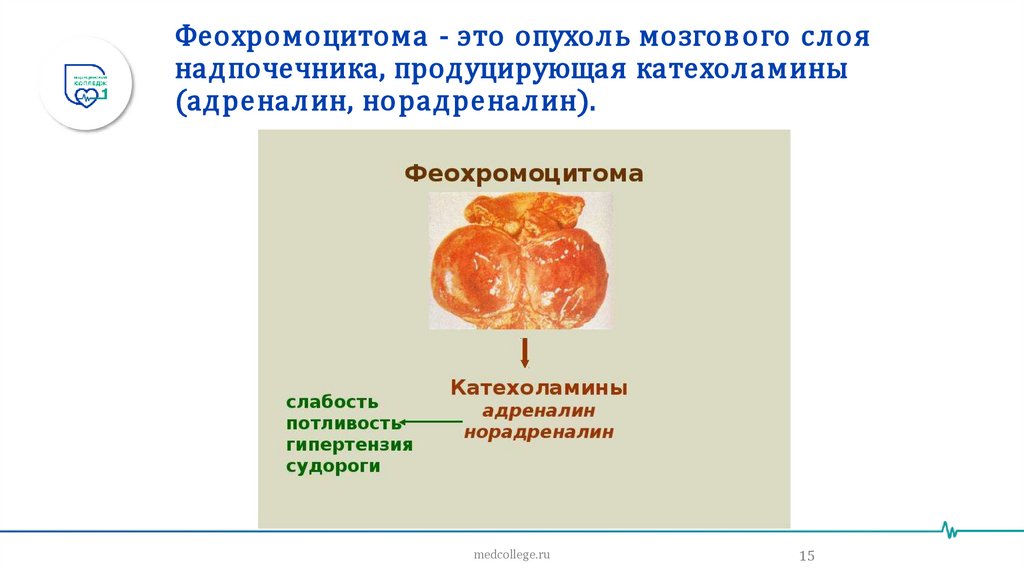 Феохромоцитома - это опухоль мозгового слоянадпочечника, продуцирующая катехоламины